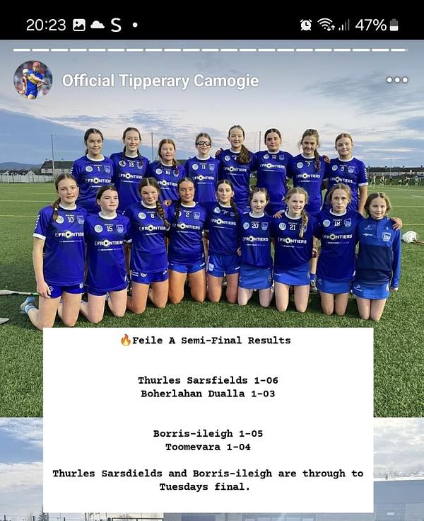 Many congrats for our U15 Camogie Feile Team on making the A Final